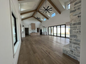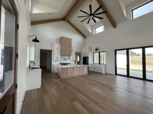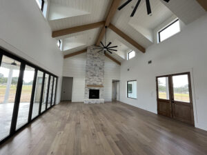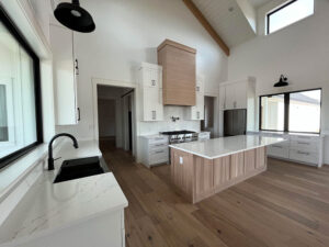 This 3500 sq. ft. custom home was built according to the custom design of the client. Tall ceilings throughout the house with an open concept in the main living area consisting of a vaulted ceiling 26′ in height.