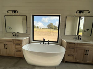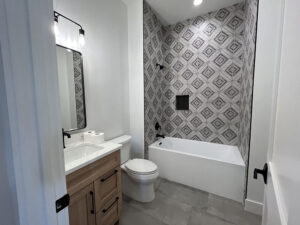 Custom kitchen cabinets painted and white oak with stain. All cabinets are solid wood with high quality full extension drawer slides, soft close, undermount ultimate function and longevity. Bathroom showers are custom designed, full tile with schluter waterproofing.